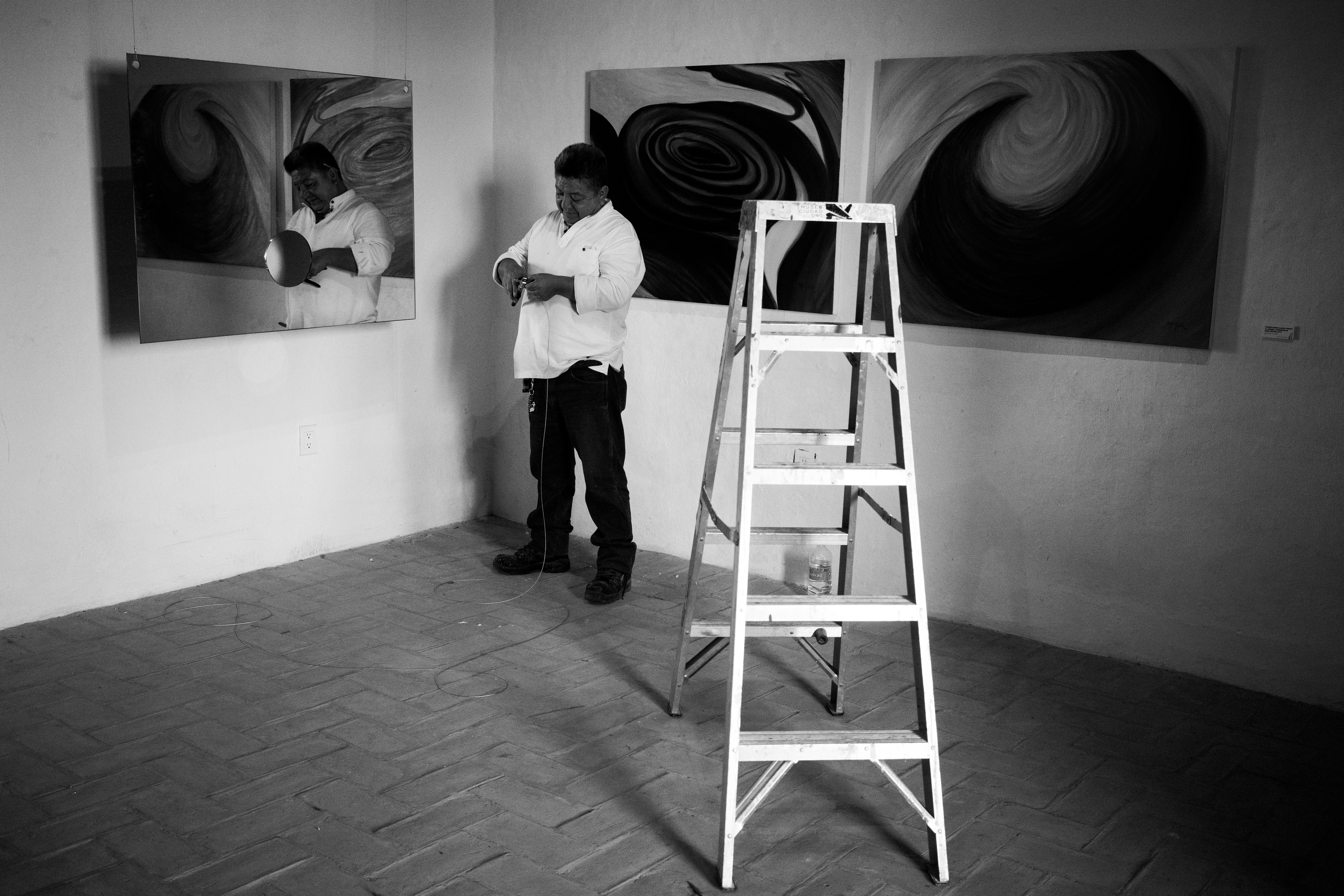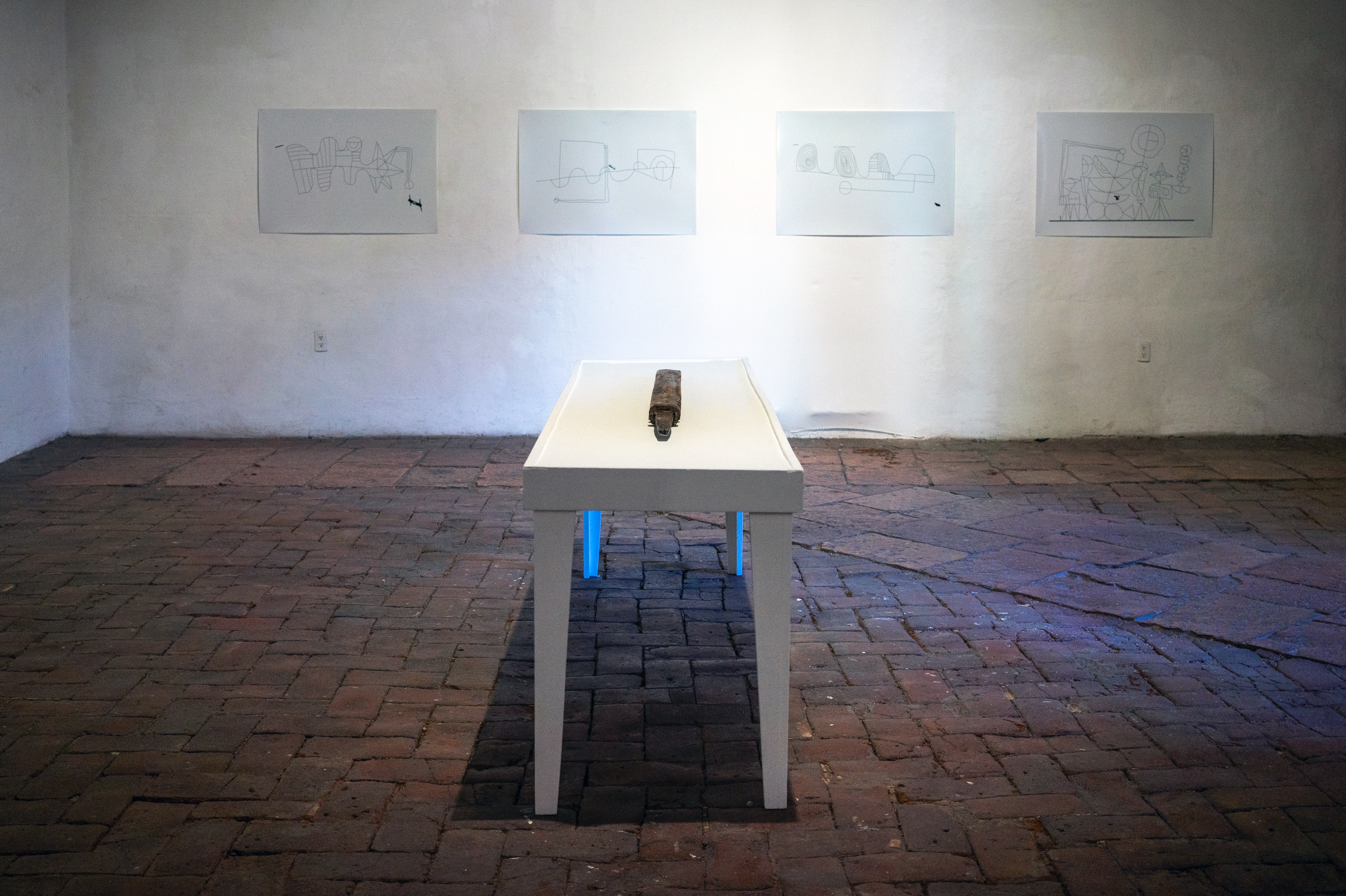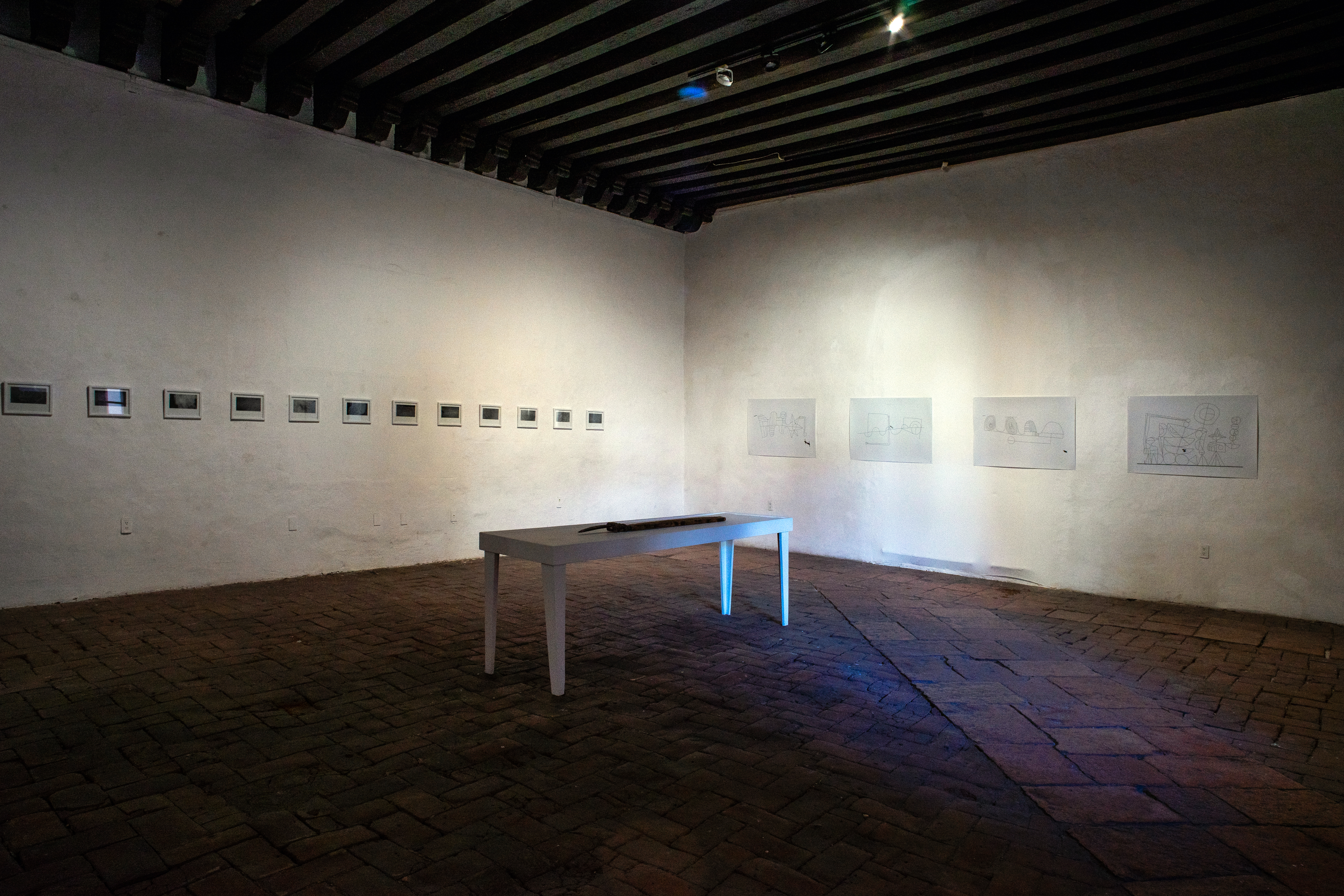 Desde dibujar sobre la tierra de terrenos baldíos con una antigua herramienta de agricultura (Arado. 2018-2019), a explorar junto con la curadora Aurora Berrueto la remota locación de Marte, Coahuila (Mars: Memories to Forget. 2017).